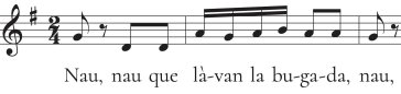 Michel Maffrand, que l’on connaît sous son pseudonyme de Jan de Nadau, a composé cette berceuse mettant en scène un jeune papa qui rêve auprès du berceau de son enfant de ce qu’elle deviendra plus tard : princesse ou gardienne d’oies, montagne ou rivière, mais toujours libre et heureuse.