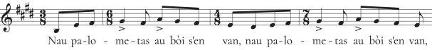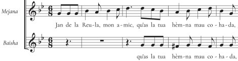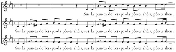 La Mesclanha II groupe, elle, trois autres airs, tout aussi célèbres : Jan de la Reula, Jo m'en vau entau marcat et Nau com jo e l'auseron.