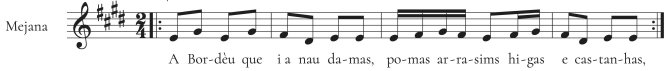 Célèbre chanson de neuf, très ancienne, chantant que des femmes dansent à Bordeaux au son du violon. Pour agrémenter rythmiquement ce rondeau, il y est aussi question de pommes, raisins, figues, châtaignes et melons. La version des Cantaires est celle proposée par La Novem.